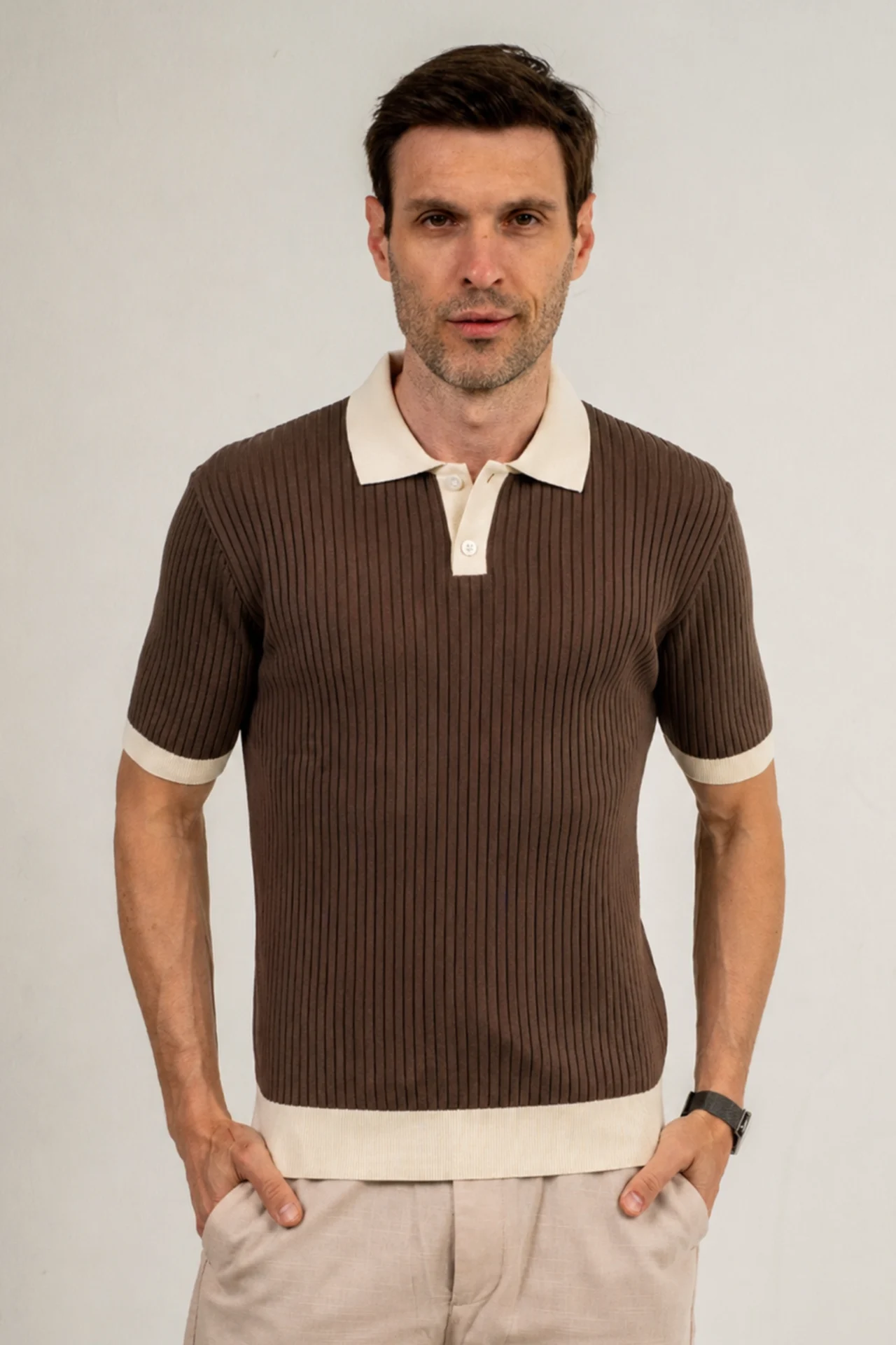 Polo Majica Varese je model koji odmah izgleda sređeno bez previše kombinovanja. Rebrasti materijal daje dubinu i razlikuje je od klasičnih polo majica.