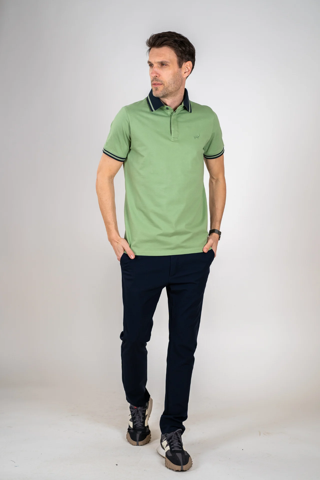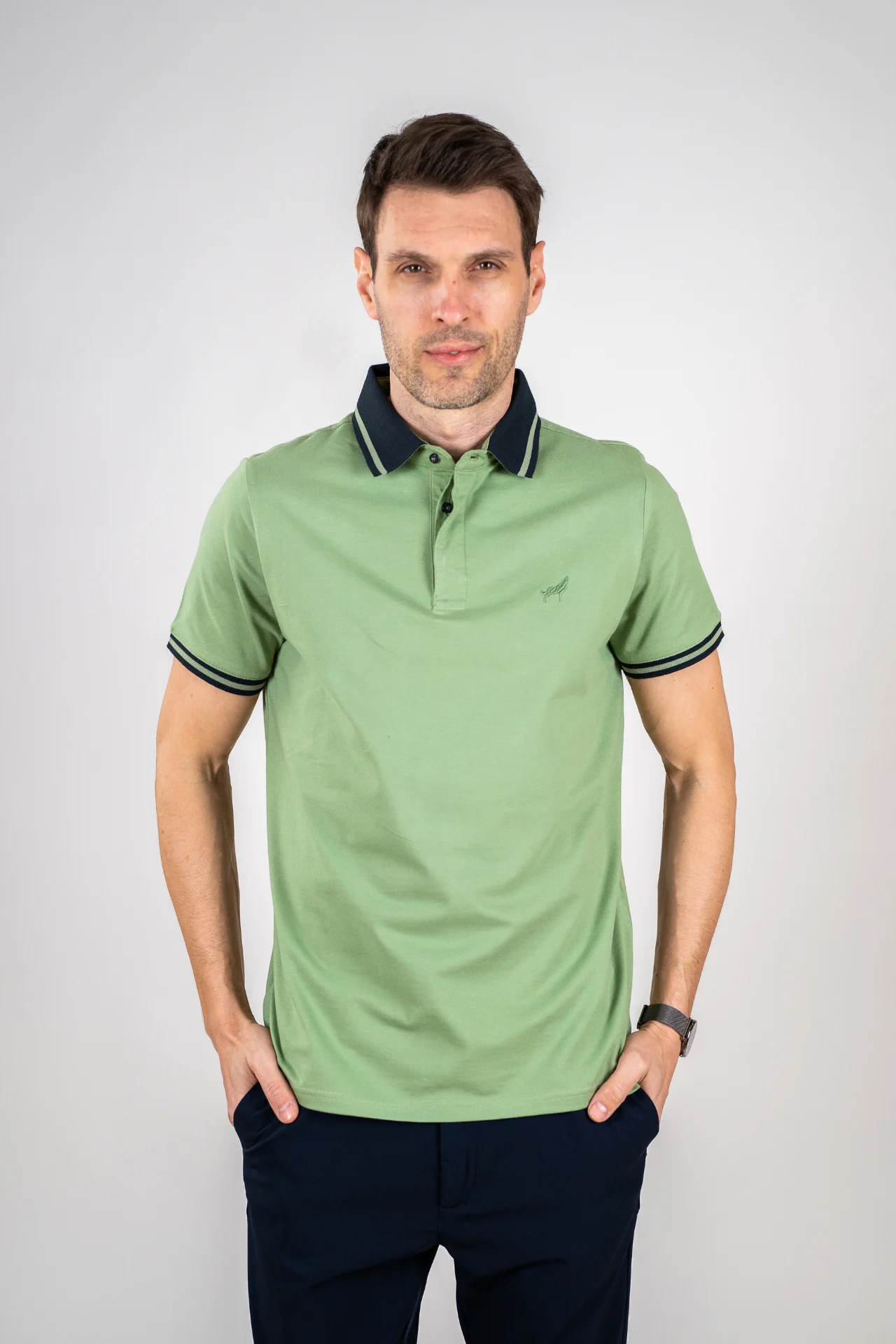 Polo majica Verdano je model koji kombinuje čist dizajn i svakodnevnu funkcionalnost. Karakteriše je pažljivo izrađena kragna sa kontrastnim linijama i diskretan vez na grudima koji daje prepoznatljiv potpis bez prenaglašenih detalja.