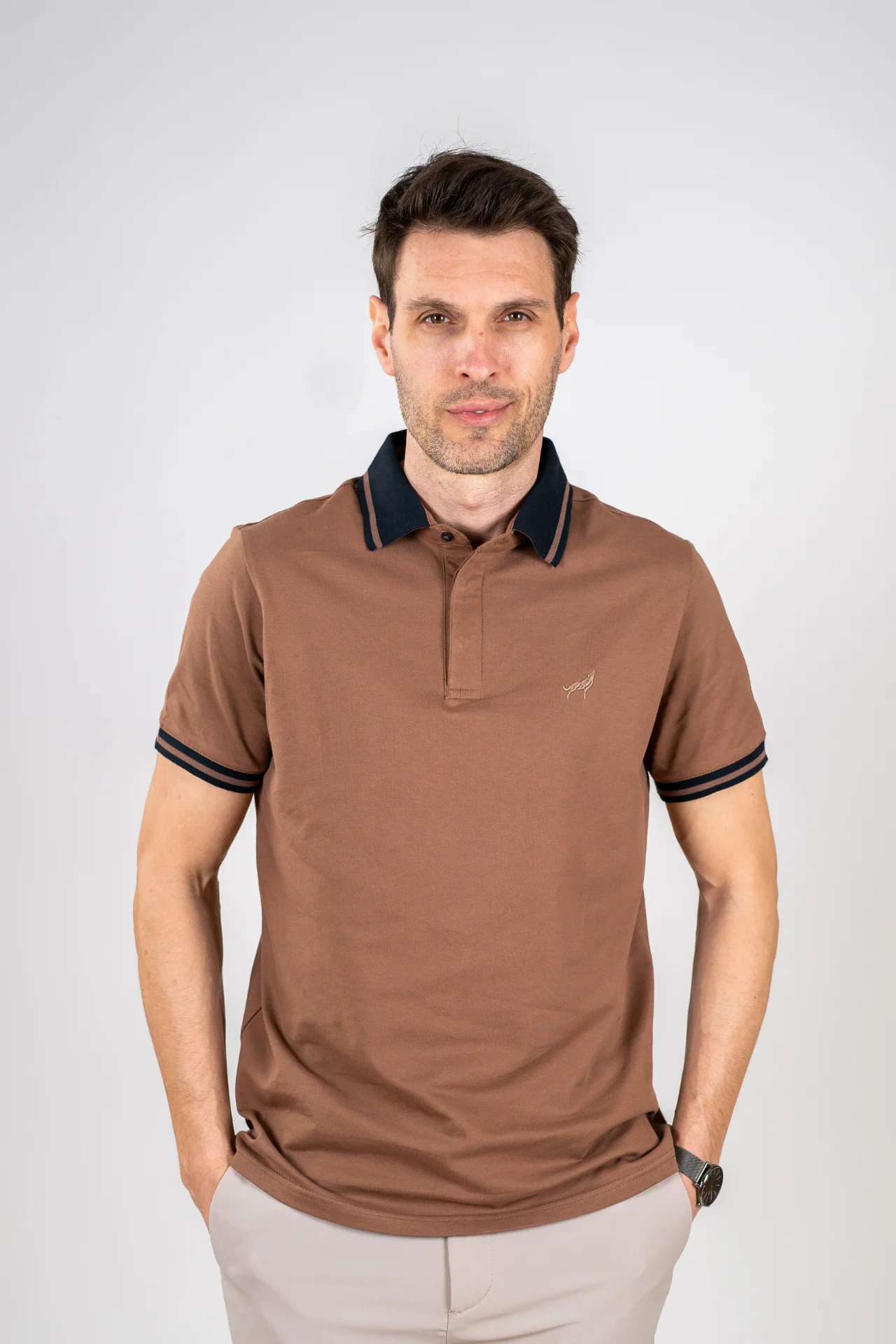 Polo majica Verdano je model koji kombinuje čist dizajn i svakodnevnu funkcionalnost. Karakteriše je pažljivo izrađena kragna sa kontrastnim linijama i diskretan vez na grudima koji daje prepoznatljiv potpis bez prenaglašenih detalja.