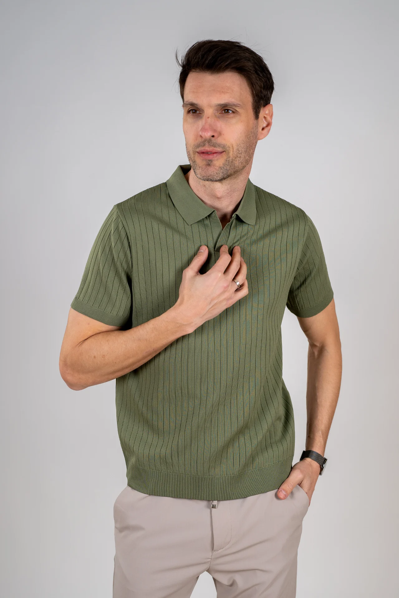 Polo majica sa vertikalnom teksturom koja daje modernu siluetu i poseban vizuelni efekat materijalu. Dostupna u 5 boja i veličinama od S do 2XL.